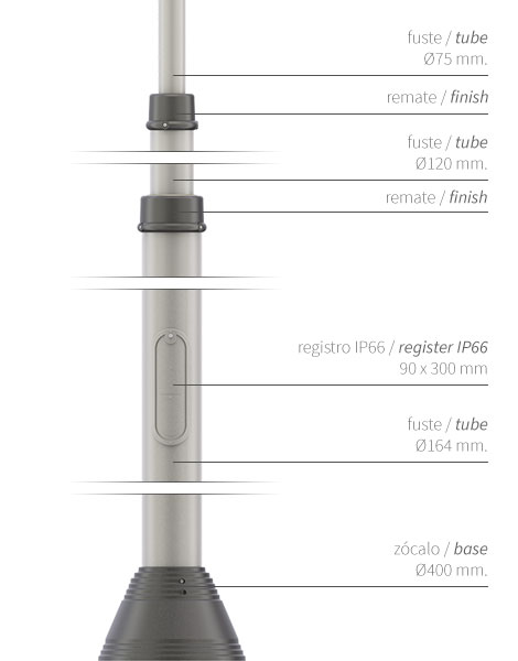 Familia de columnas para alumbrado público Clase II de 3 a 12 metros de altura.