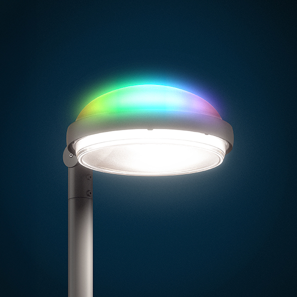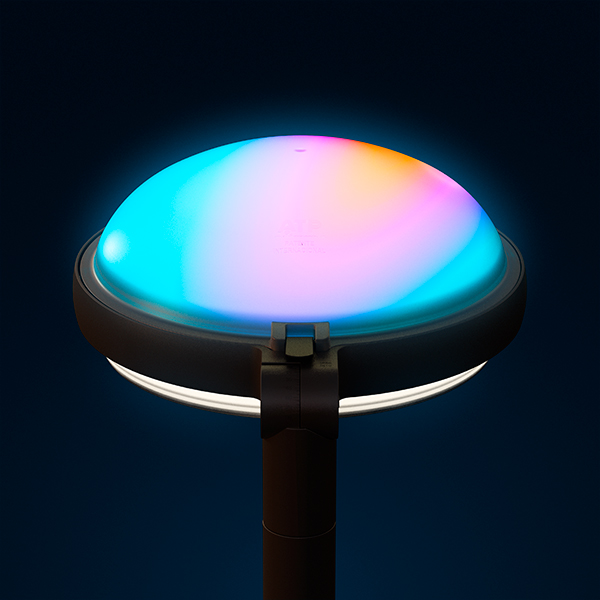 Metrópoli Color es un ejemplo de innovación en iluminación ornamental y decorativa. Diseñada con una cubierta retroiluminada RGBW dinámica, esta luminaria es capaz de reproducir más de 250 millones de colores y realizar transiciones suaves, espectáculos sincronizados y cambios dinámicos mediante control DMX o Bluetooth.