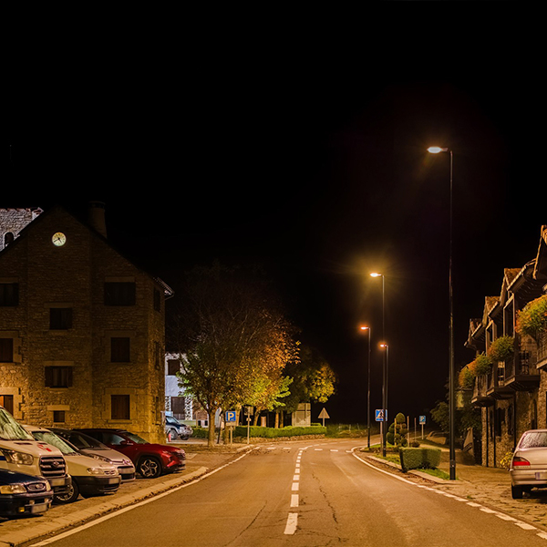 For road and street lighting, the Enur L luminaire was selected, a high-efficiency fixture designed to optimize light distribution. Thanks to prior photometric studies and customized manufacturing, each luminaire has been adapted to the specific needs of the municipality, achieving exceptionally high uniformity that allows for better visibility with lower light levels, thereby reducing energy consumption without compromising safety.