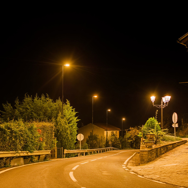 To respect the architectural identity of the municipality, Villa XLA luminaires with Comfort Diffuser® have been installed in low-height areas. This classic model seamlessly integrates with the rustic aesthetic and stone façades of the town while reducing glare and providing uniform and comfortable lighting.