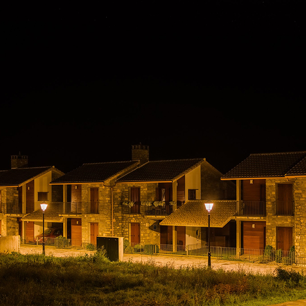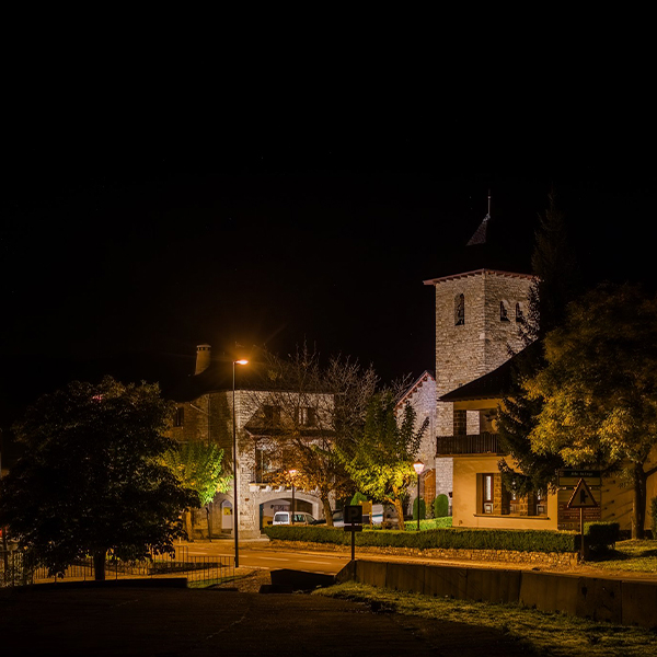 Located in the Aragonese Pyrenees, Gavín is frequently exposed to electrical storms, which can cause power surges in the lighting network. To prevent these issues, Class II luminaires without grounding have been installed, preventing voltage spikes from atmospheric discharges and protecting electronic equipment.