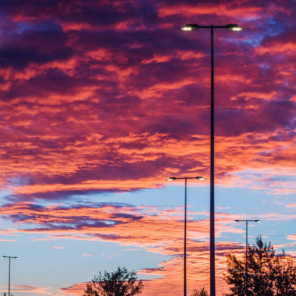 The chosen luminaires, including Villa XLA, Alameda A, and Aire® 3 Series and 5 Series, stand out for their high energy efficiency, resistance to extreme weather, and low upper hemispheric flux (FHS), ensuring that light is effectively directed without causing light pollution.