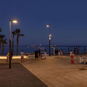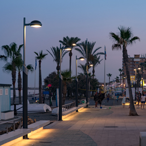 The outdoor lighting fixtures selected for this project combine modern lines with functionality. Comprised of Matrix columns and Metrópoli luminaires, these fixtures not only provide effective and efficient illumination but also add a touch of contemporary style desired for the Sabinillas promenade.