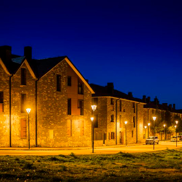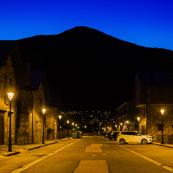 - Escarrilla (Valle de Tena): se instalaron 209 luminarias Villa XLA de sólo 35 W, configuradas con ópticas simétricas y asimétricas para cada vía. El resultado: máxima uniformidad, visibilidad óptima y más de un 70 % de ahorro, con un alumbrado totalmente respetuoso con el entorno pirenaico.