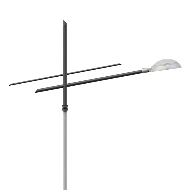 Sistema de colocación del brazo insertado en el extremo de la columna. La fijación a la columna se realiza mediante tres tornillos hexagonales de métrica ocho. Varios remates disponibles según diámetro.