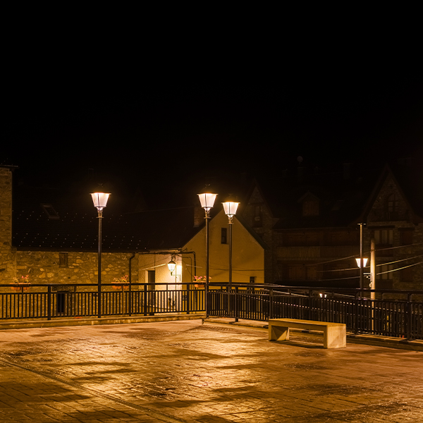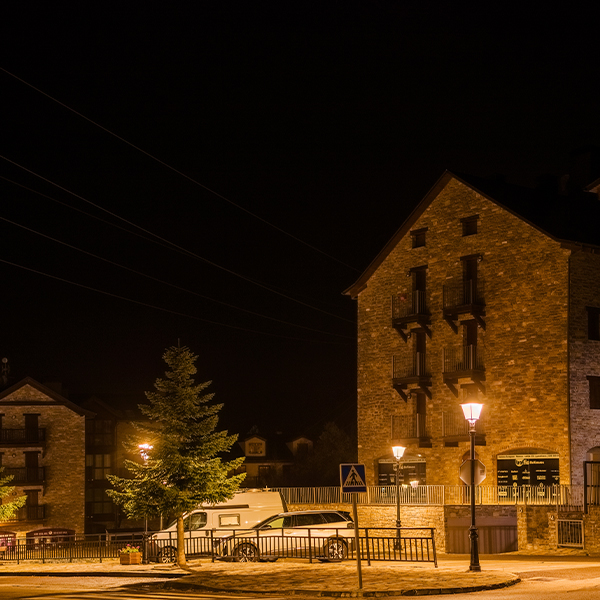 ESCARRILLA —16/4/2025— The municipality of Escarrilla, located in the heart of the Valle de Tena, has completed a comprehensive renovation of its outdoor lighting system using state-of-the-art LED technology. A total of 209 Villa XLA luminaires with Comfort Diffuser® and ultra-warm 2200 K colour temperature have been installed. These were configured with a precise combination of symmetrical and asymmetrical optics to adapt efficiently to the specific requirements of each area in the town, avoiding overlighting and directing the light only where it is needed.