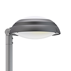 Anti-vandal street luminaire of a circular design with a flat diffuser and 6 interchangeable optics. Also available in High-performance LED technology.