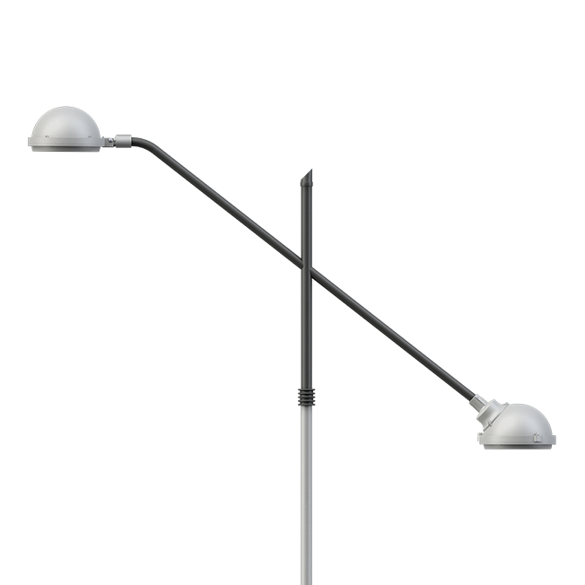 Sistema de colocación del brazo insertado en el extremo de la columna. La fijación a la columna se realiza mediante tres tornillos hexagonales de métrica ocho. Varios remates disponibles según diámetro.
