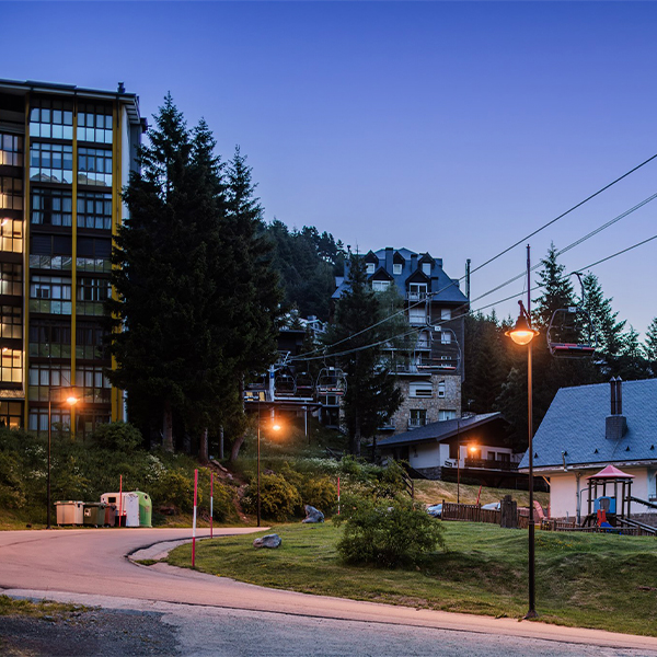 Las condiciones climáticas del Pirineo aragonés requieren soluciones capaces de soportar temperaturas extremas, hielo, humedad, radiación UV y una exposición constante a agentes externos. Las luminarias instaladas, fabricadas en polímeros técnicos de alta resistencia, son totalmente inmunes a la corrosión y evitan la aparición de condensaciones internas, lo que garantiza un funcionamiento estable incluso en los meses más rigurosos del invierno.