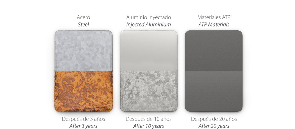 ATP has managed to leave behind the days in which it was necessary to program reviews, replace worn-out parts, paint the posts and mobilize crews of specialists with crane vehicle for substitution. Nowadays, with our invulnerable to corrosion sets, the process is considerably simplified. Install and forget. And with a 10-year warranty, the longest in the sector.