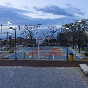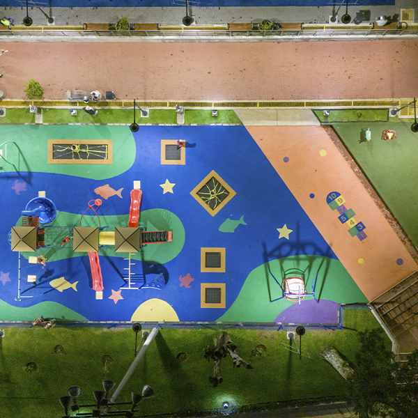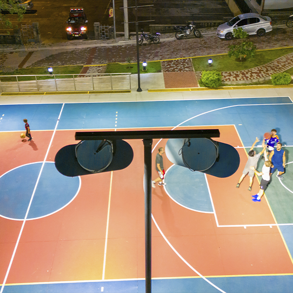 Para garantizar una iluminación óptima y la máxima visibilidad nocturna en las instalaciones deportivas, ATP Iluminación suministró su tecnología de alumbrado LED de alto rendimiento. Se instalaron ocho luminarias Aire® Serie 7 de 150 W en la cancha multiuso, proporcionando una iluminancia media de 250 lux con una uniformidad superior a 0,5. En la cancha de fútbol de césped artificial, se utilizaron ocho luminarias Aire® Serie 7 de 200 W, alcanzando una iluminancia media de 200 lux con una uniformidad de más de 0,6. Estos niveles de iluminación aseguran un entorno seguro y confortable para los usuarios del parque, tanto en actividades recreativas como en competiciones deportivas.