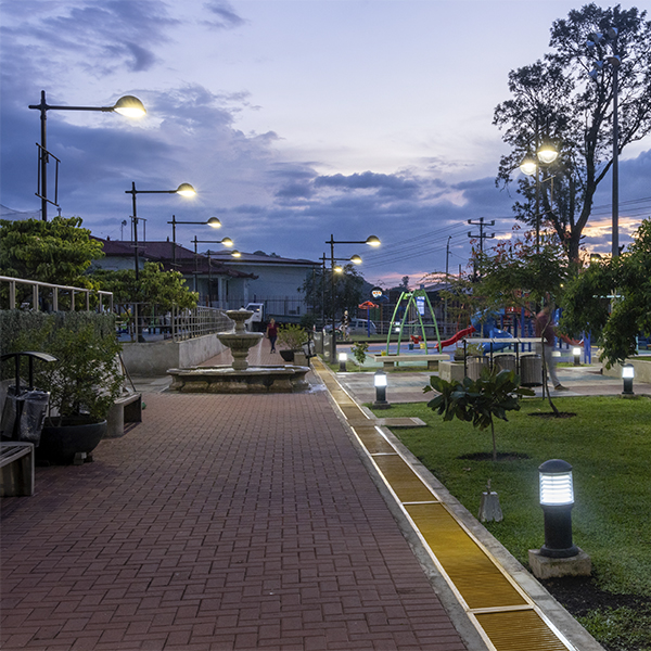 El clima de Costa Rica presenta desafíos significativos para el alumbrado exterior debido a su alta humedad, intensas lluvias y frecuentes tormentas eléctricas. Las luminarias de ATP Iluminación están especialmente diseñadas para soportar estas condiciones adversas. Fabricadas con polímeros técnicos aislantes, las luminarias no sólo son inmunes a la corrosión sino también a las descargas electrostáticas (ESD) y a las sobretensiones causadas por descargas atmosféricas, garantizando así una larga vida útil y un funcionamiento sin interrupciones.