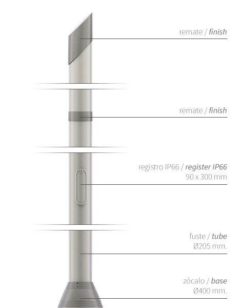 Familia de columnas para alumbrado público Clase II de 4 a 11,5 metros de altura.
