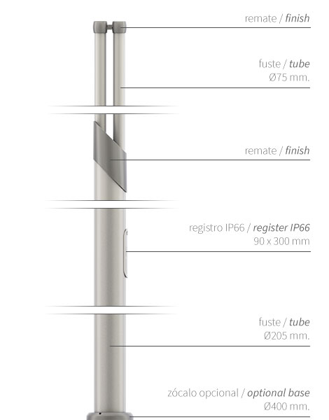 Familia de columnas para alumbrado público Clase II de 3,6 a 8,8 metros de altura.