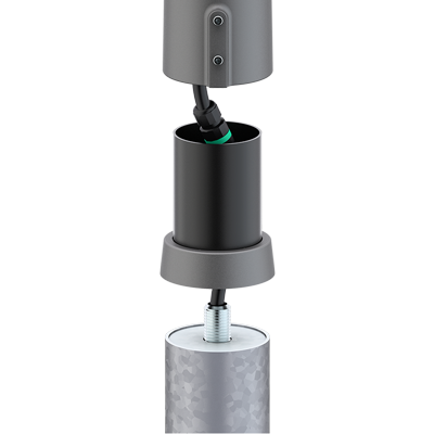 Conectores estándar para dispositivos Zhaga o Nema. Permiten la conexión de nodos de gestión remota y sensores crepusculares, de contaminación y de presencia, dependiendo de la luminaria.