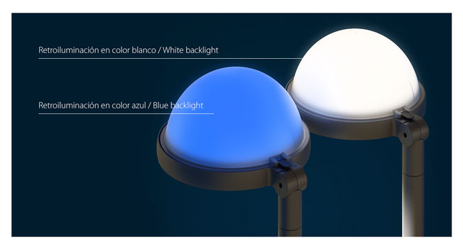 LED streetlighting vandal-proof luminaire with dynamic RGBW backlit cover, fully controllable via Bluetooth or DMX protocol.