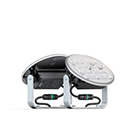 Proyectores compactos con los elementos esenciales en el mínimo tamaño. El modelo S tiene un diámetro de 200 mm, con 95 mm de anchura y 210 mm de altura, mientras que el M alcanza los 285 mm de diámetro, 105 mm de anchura y 305 mm de altura.