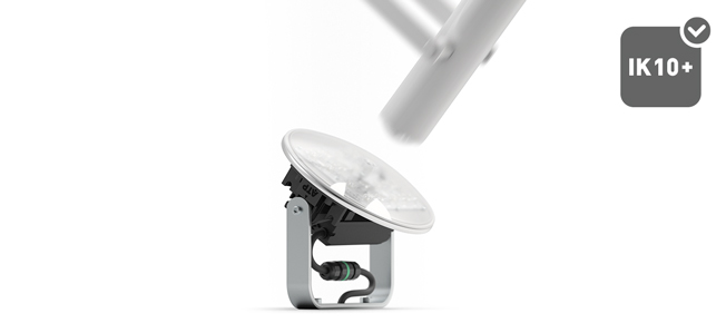El proyector Serie E pasa pruebas de impacto superiores a 50 julios, lo que supone más del doble que el máximo grado de resistencia mecánica, IK10, certificado por la norma internacional IK EN 50102 (20 julios).
