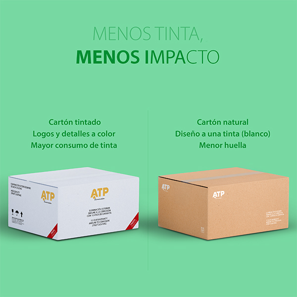 ARRE —5/6/2025— Coincidiendo con el Día Mundial del Medioambiente, ATP Iluminación presenta su nuevo embalaje sostenible: una caja fabricada en cartón natural sin tintar e impresa únicamente a una tinta blanca. Esta decisión estratégica responde a un objetivo claro: reducir al máximo la huella ambiental de cada producto fabricado y enviado.