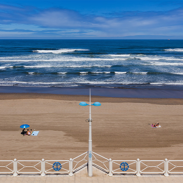 Para cumplir con los objetivos se ha incorporado la luminaria Evolución P, equipada con óptica asimétrica y control de flujo, capaz de concentrar la luz exclusivamente sobre el paseo y reducir la potencia instalada en más de un 75 %. El color de luz elegido, 3000 K, mejora el confort visual y se integra de manera natural en el paisaje marino, mientras que la distribución homogénea garantiza seguridad, uniformidad y una experiencia nocturna más agradable.