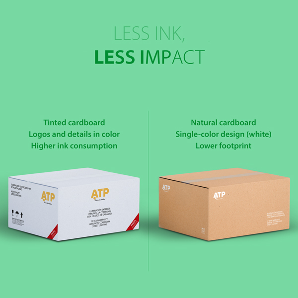 ARRE —5/6/2025— Coinciding with World Environment Day, ATP Lighting introduces its new sustainable packaging: a box made from untinted natural cardboard and printed with a single white ink. This strategic move responds to a clear objective: to minimize the environmental footprint of every product manufactured and shipped.